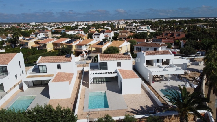 Chalet de nueva construcción en la magnífica zona de Son blanc, en Ciutadella de Menorca. Cuenta con una superficie total construida de 196m2, sobre una parcela de 628m2.