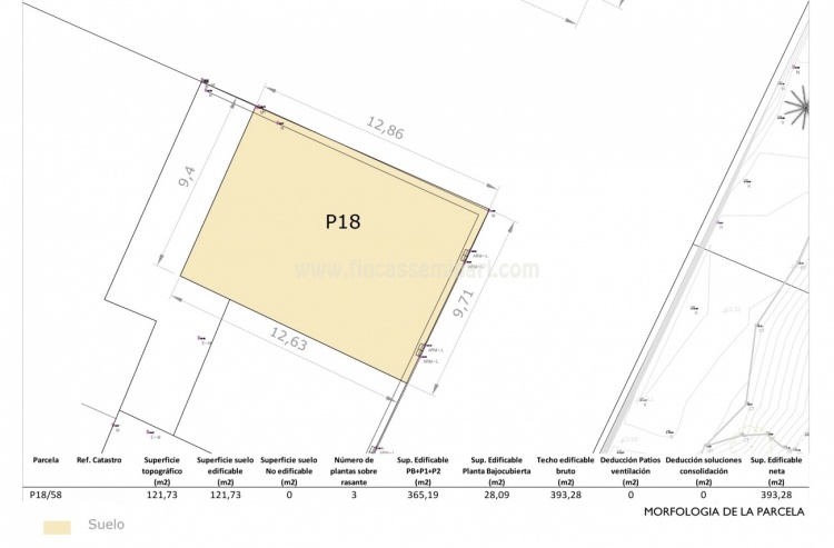 Superficie edificable de 365,19 m2 distribuidos en planta baja + 2 plantas y ático.